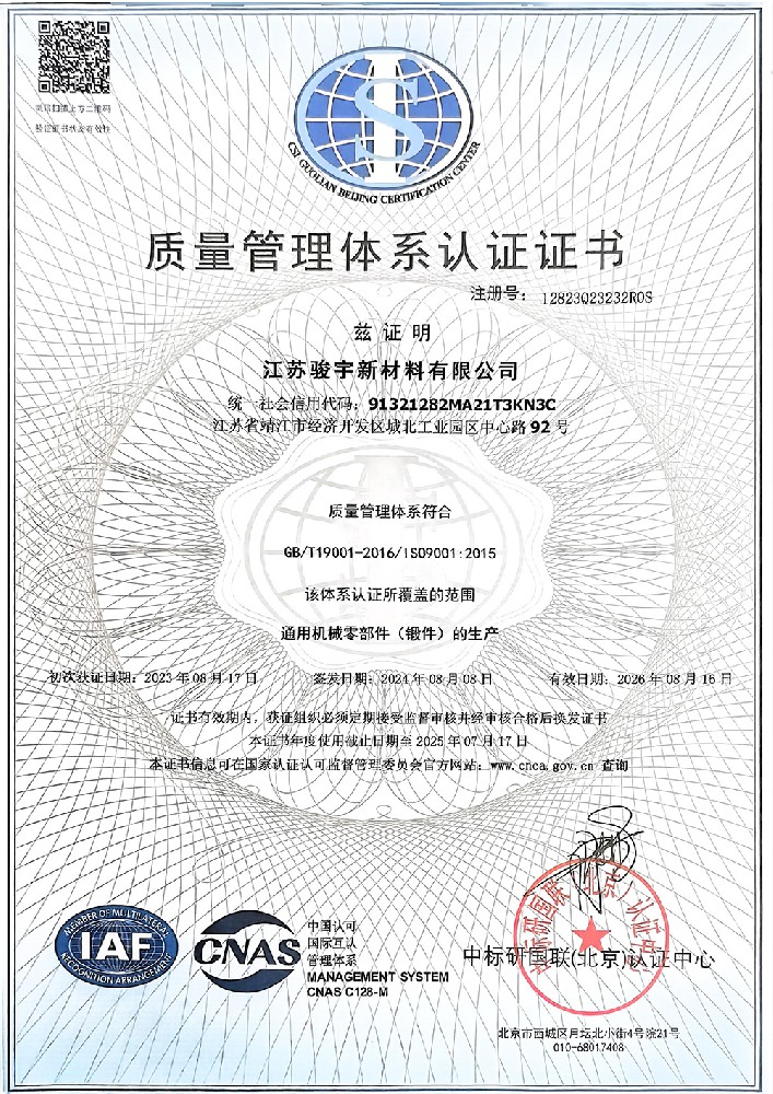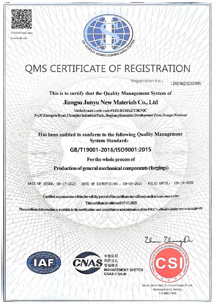 江蘇駿宇新材料公司位于江蘇省靖江市城北工業(yè)園區(qū)中心路92號(hào),公司始建于1992年,在2020年6月新組建江蘇駿宇新材料有限公司。公司現(xiàn)擁有200余人的員工團(tuán)隊(duì),高級(jí)工程師9人,機(jī)械類(lèi)12人及專(zhuān)業(yè)技術(shù)人才共36人。同時(shí),現(xiàn)代化的生產(chǎn)設(shè)備和優(yōu)質(zhì)的生產(chǎn)工藝,也保障了我們產(chǎn)品的質(zhì)量和服務(wù)。在企業(yè)成長(zhǎng)過(guò)程中,我們與時(shí)俱進(jìn),依靠?jī)?yōu)質(zhì)的管理模式和引進(jìn)專(zhuān)業(yè)科技人才,保證了企業(yè)發(fā)展的“軟”實(shí)力。我們先后投入大量資金引進(jìn)了先進(jìn)的鍛造錘、鍛造液壓機(jī)、鍛造輾環(huán)機(jī),多臺(tái)加工中心、數(shù)控車(chē)床、銑、刨、礳機(jī)床,以及覆蓋整個(gè)產(chǎn)品熱處理和表面處理工藝的設(shè)備,形成一系列完整的加工流程。     我們產(chǎn)品分為三個(gè)系列: 一、各種非標(biāo)零部件的設(shè)計(jì),鍛造,加工。二、···